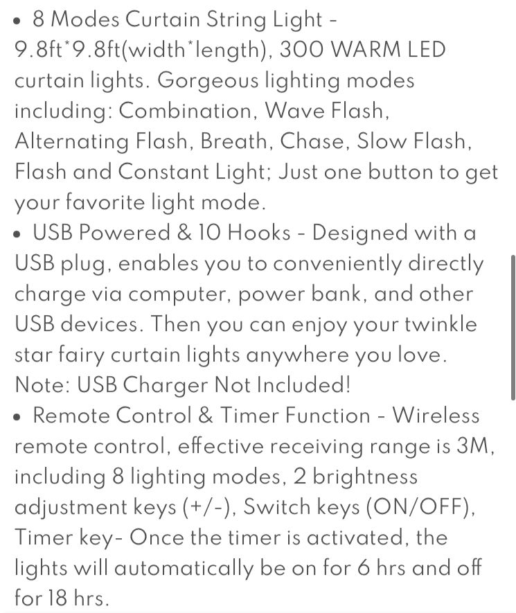 Curtain Fairy String Light Remote Control USB Powered for Party & Home Decorations