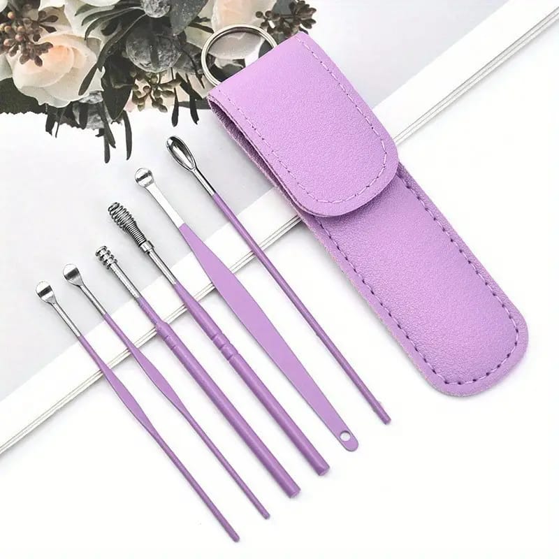 Ear Wax Removal Kit, 6pcs/set Ear Pick Tools Ear Cleaning Tool, Portable Innovative Spring Earwax Cleaner Tool Stainless Steel Ear Wax Remover, Reusable Ear Cleaner For Adults