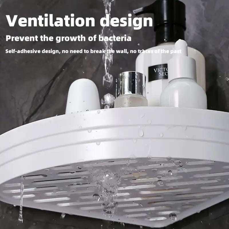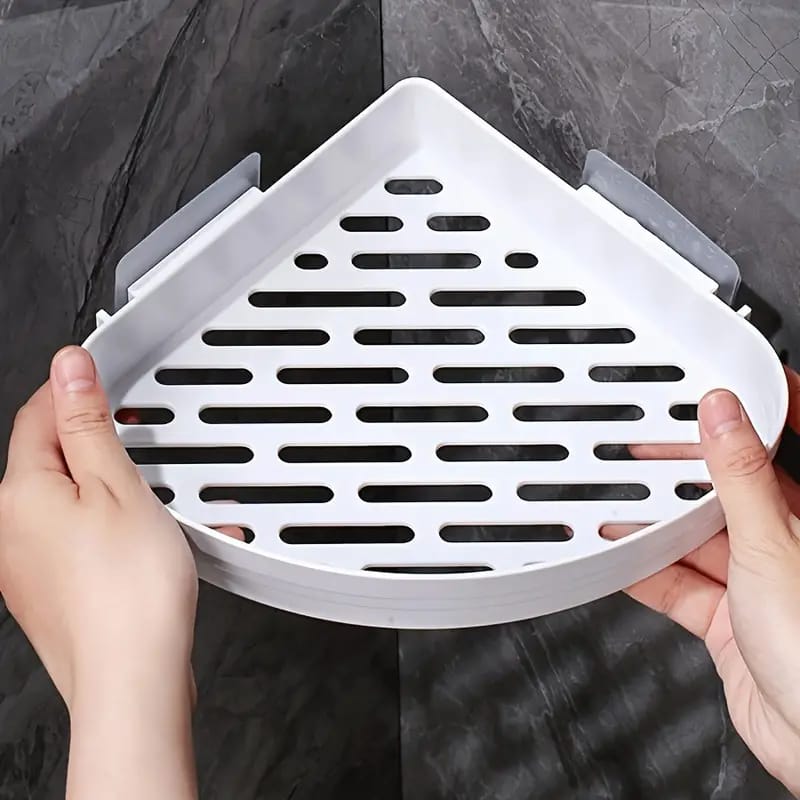 Easy-Install Corner Shower Caddy - Wall-Mounted Plastic Shelf with Drain Holes for Bathroom & Kitchen Storage, Perfect for Shampoo & Condiments