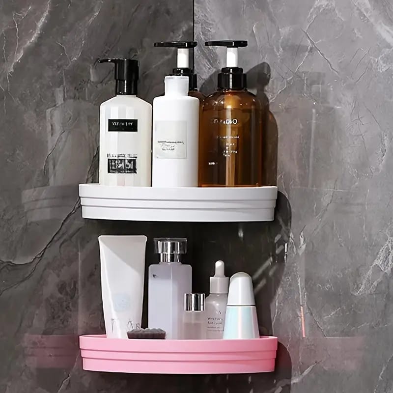 Easy-Install Corner Shower Caddy - Wall-Mounted Plastic Shelf