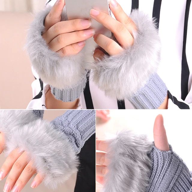 Fashion Winter Women Gloves Plush Faux Fur Knitting Wool Keep Warm Short Mitten Fingerless Girl Half Finger Touch