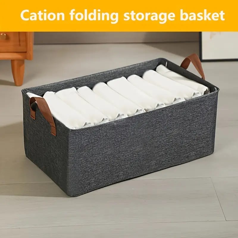 Foldable Collapsible Canvas Storage Rod Basket with Handles - Sturdy Steel Frame Support, Durable Cationic Fabric Organizer for Clothes, Toys & More