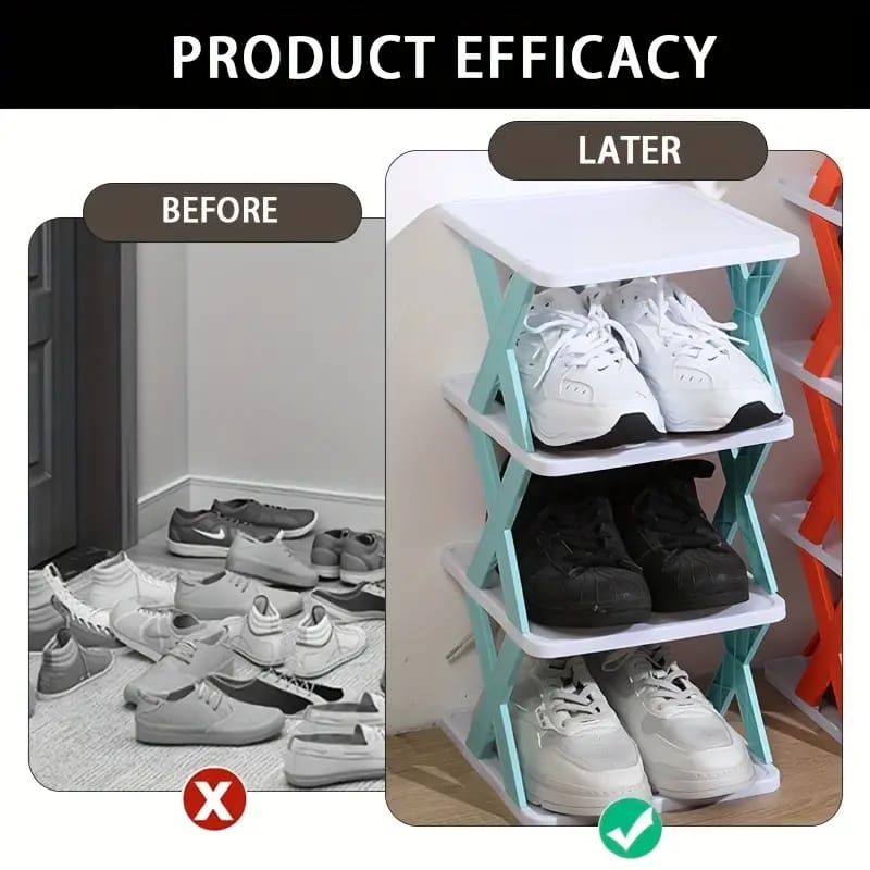Space-Saving Multi-Layer Shoe Rack - Durable Plastic, Narrow Design For Dorms & Entryways