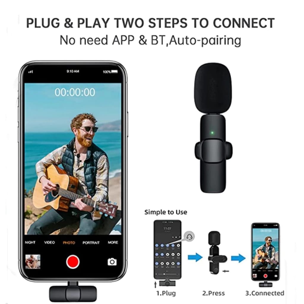 K9 Microphone Mic Plug & Play USB Type C Connector Wireless Lavalier Microphone Wireless Mic For Vlog Auto Sync Noise Reduction NO APP or Bluetooth Needed- K9 Mic For