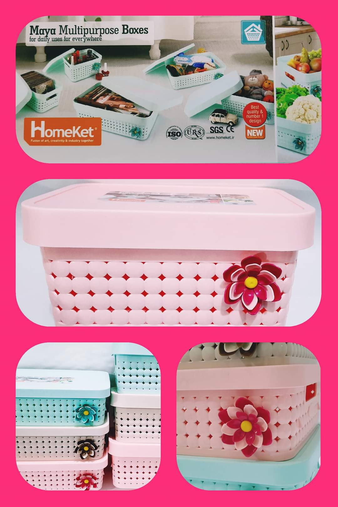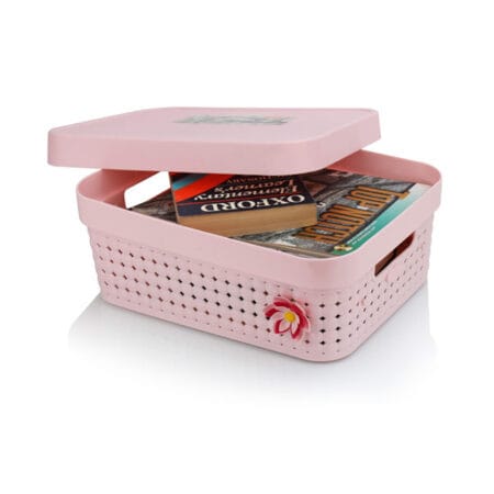 Pack of 2 Multipurpose Plastic Storage Basket Vanity Storage Organizer With Lid