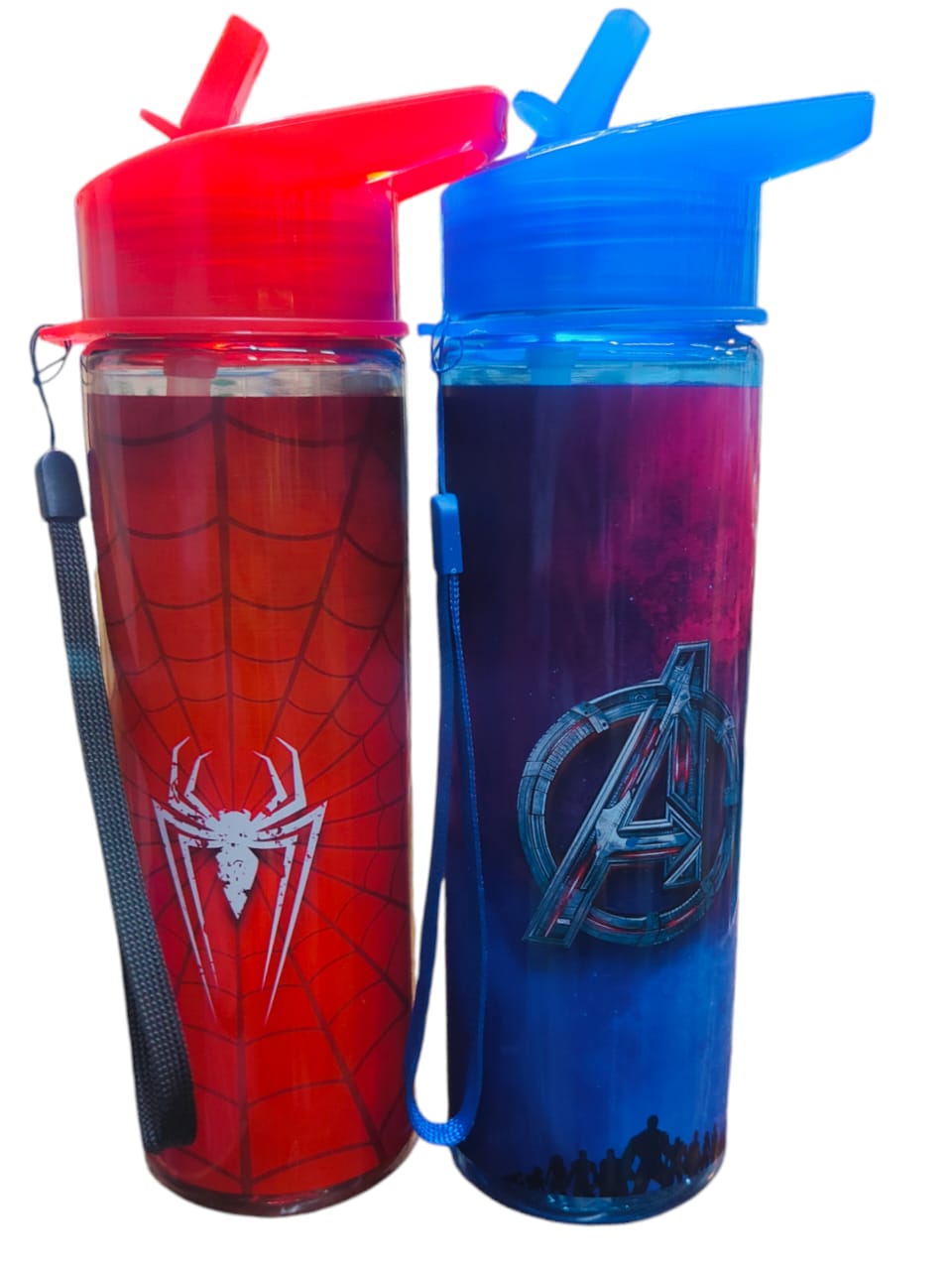 Plastic Drinking Bottle with Integrated Straw and Drinking Nozzle, Marvels . 500 ml.