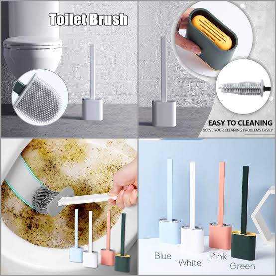 Silicone Toilet Brush With Toilet Brush Holder Stand Bathroom